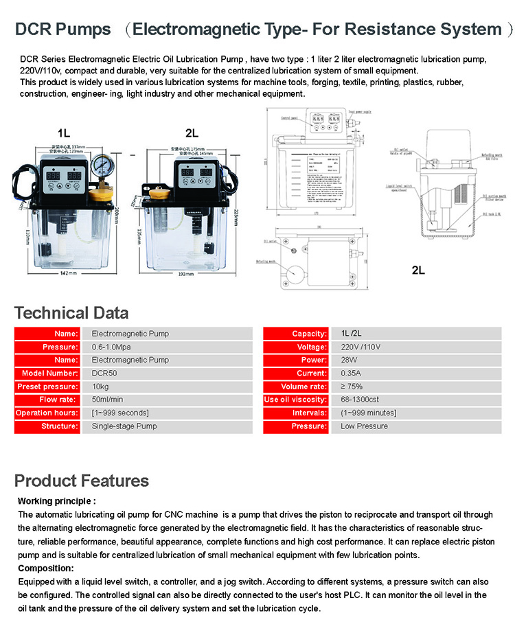 Product advantages: 1. The product sets current overload protection, the motoradopts overheating, high temperature and automatic disconnection protectionsettings.2.The product adopts external adjustable pressure, which can beadjusted appropriately according to the pressure required by the oil pump, andthe pressure is more stable. With volume distributor is more reasonable andstable. 3. The digital display adopts double digital display, the working time andintermittent time work separately and display at the same time, to avoid thephenomenon of digital tube jumping and instability.