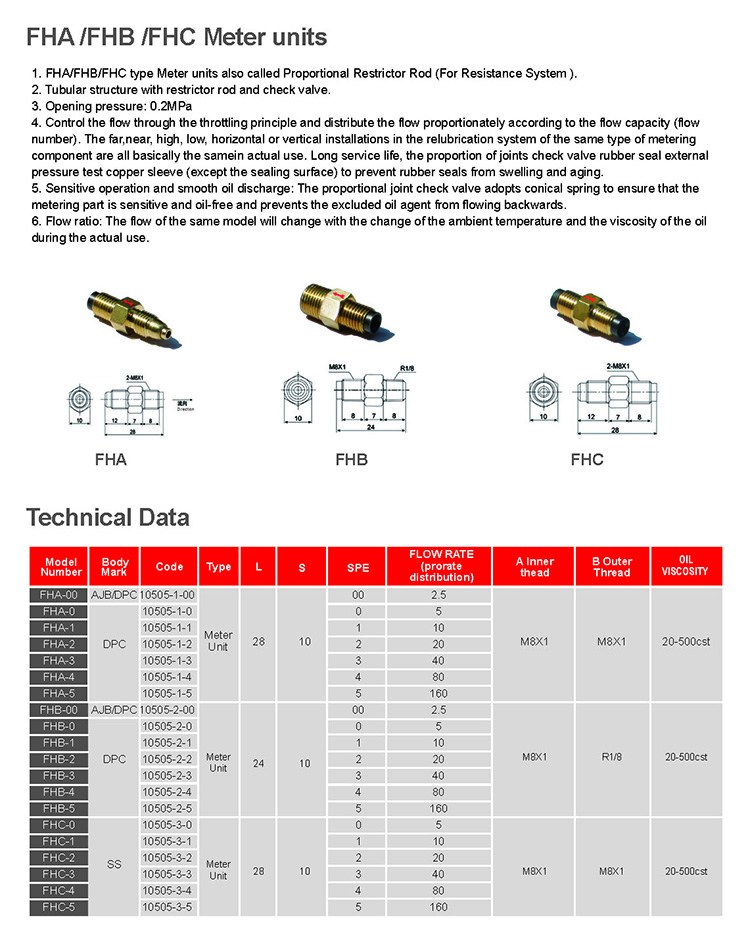 1. FHA/FHB/FHC type Meter units also called Proportional Restrictor Rod (For Resistance System ).