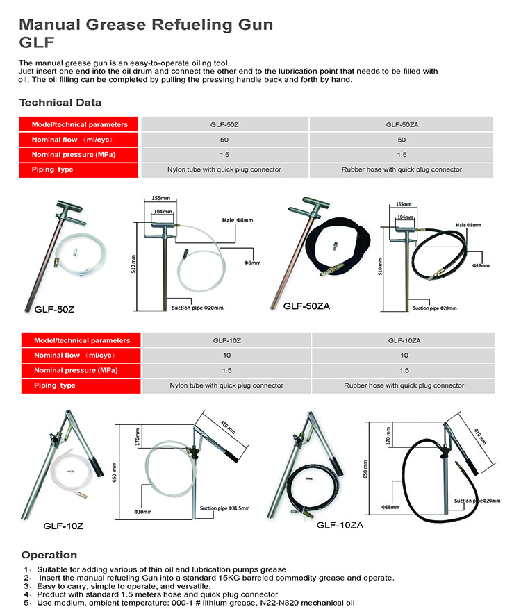 Just insert one end into the oil drum and connect the other end to the lubrication point that needs to be filled with oil, The oil filling can be completed by pulling the pressing handle back and forth by hand.