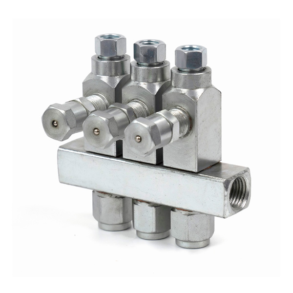 Series quantitative oil filler with adjustable dispenser 2-10 holes Pressureand explosion resistant, anti-corrosion and rust resistant.DL injector is suitable for high pressure filling conditions. Precise and quantitative oil filling is achieved through internal plunger action. DL injector is of single pillar plug type structure. Several single injector are connected in series by oil circuit to form multiple oil outlet. Each oil outlet has an adjusting indicator rod, can continuously adjust the amount of oil without stopping, each oil outlet is independent of each other, stable and reliable operation. DL lubricator produces oil during pressure and stores oil during system pressure relief. The DL injector has a fluorine rubber seal and is suitable for high temperature use (up to 176℃) . According to different displacement, it is divided into DL1 type DL2 type and DL3 type.