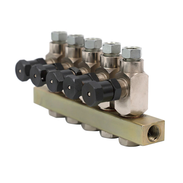 Series quantitative oil filler with adjustable dispenser 2-10 holes Pressureand explosion resistant, anti-corrosion and rust resistant.DL injector is suitable for high pressure filling conditions. Precise and quantitative oil filling is achieved through internal plunger action. DL injector is of single pillar plug type structure. Several single injector are connected in series by oil circuit to form multiple oil outlet. Each oil outlet has an adjusting indicator rod, can continuously adjust the amount of oil without stopping, each oil outlet is independent of each other, stable and reliable operation. DL lubricator produces oil during pressure and stores oil during system pressure relief. The DL injector has a fluorine rubber seal and is suitable for high temperature use (up to 176℃) . According to different displacement, it is divided into DL1 type DL2 type and DL3 type.