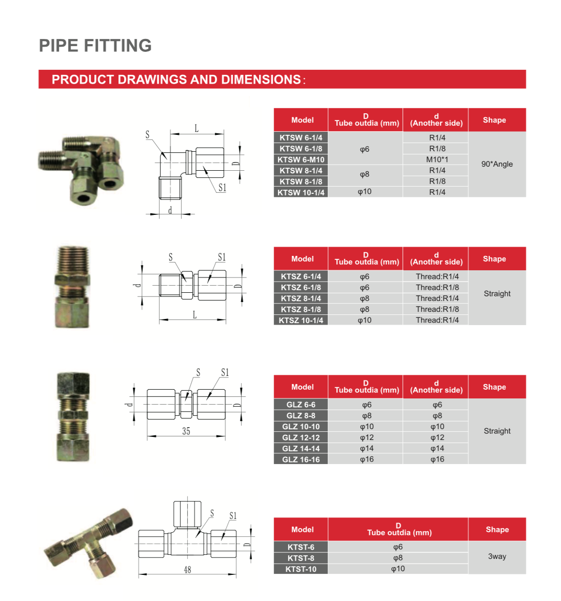 KEWELL Pipe Fittings For Lubrication System Butt-joint straight pipe fittings