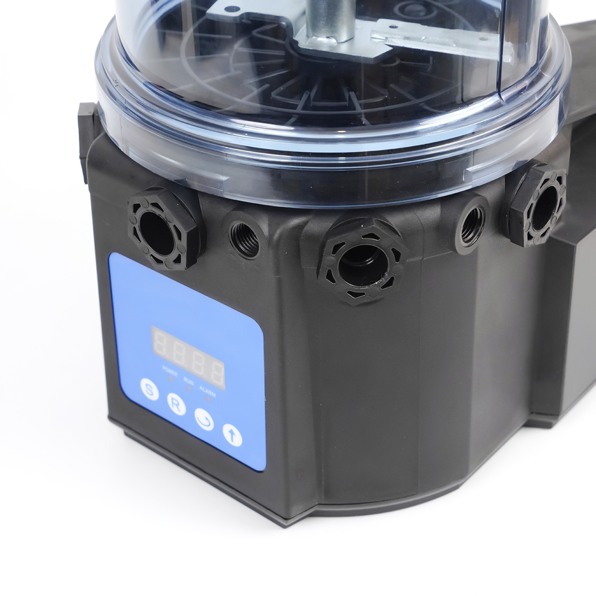 The KG electric lubrication pump is a lubrication pump driven by a small motor, with 1 to 5 oil outlets. This pump can form acentralized lubrication system with distrbutors, etc, to achieve lubrication of multiple lubrication points. The lubrication pumphas a fexible design, compact structure, and overall durability, ensuring reliable operation. The top of the lubrication pump thank is designed with a refueling cap for easy disassembly.