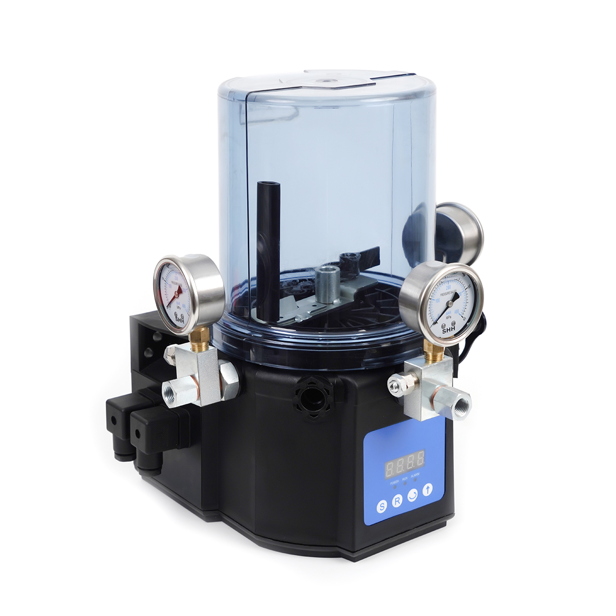 The KG electric lubrication pump is a lubrication pump driven by a small motor, with 1 to 5 oil outlets. This pump can form acentralized lubrication system with distrbutors, etc, to achieve lubrication of multiple lubrication points. The lubrication pump has a fexible design, compact structure, and overall durability, ensuring reliable operation. The top of the lubrication pump thank is designed with a refueling cap for easy disassembly. The lubrication pump can be eauibped with a built-in controller for intelligent control,system operation monitoring, and timed and quantitative oil injecton.Widely used in industries such as construction machinery, wind power generation, logistics and transportation equipment.