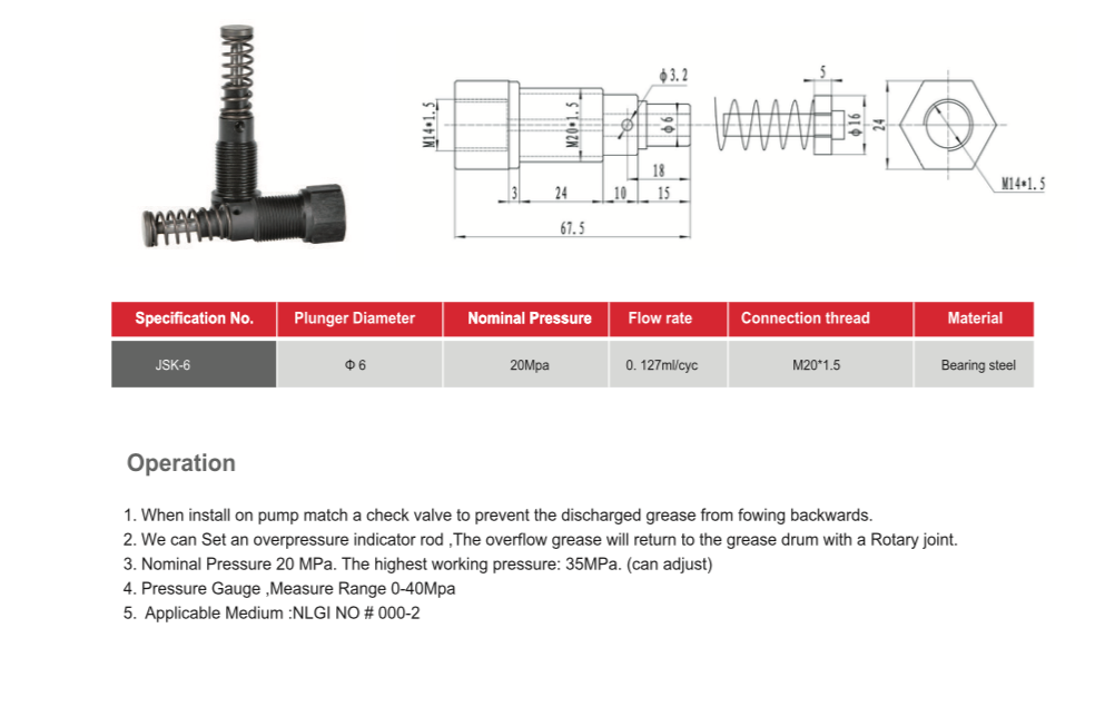 The pump unit, also known as the plunger pair, is the core component of theelectric grease lubrication pump, precision machined from bearing steel andequipped with a built-in check valve. The highest pressure can reach 25Mpa, theminimum matching gap is 3-5um. The rated displacement is 0.12cc or 0.18cc.The pump element transports lubricating pressure fluid, and at the same timegenerates back pressure on the working resistance of the connectedactuator.The function of the pump element is to make the piston of the pumpelement push and pull through the eccentric wheel to suck in the grease or oil inthe element cavity, and then pressurize the grease or oil into the pipeline.
